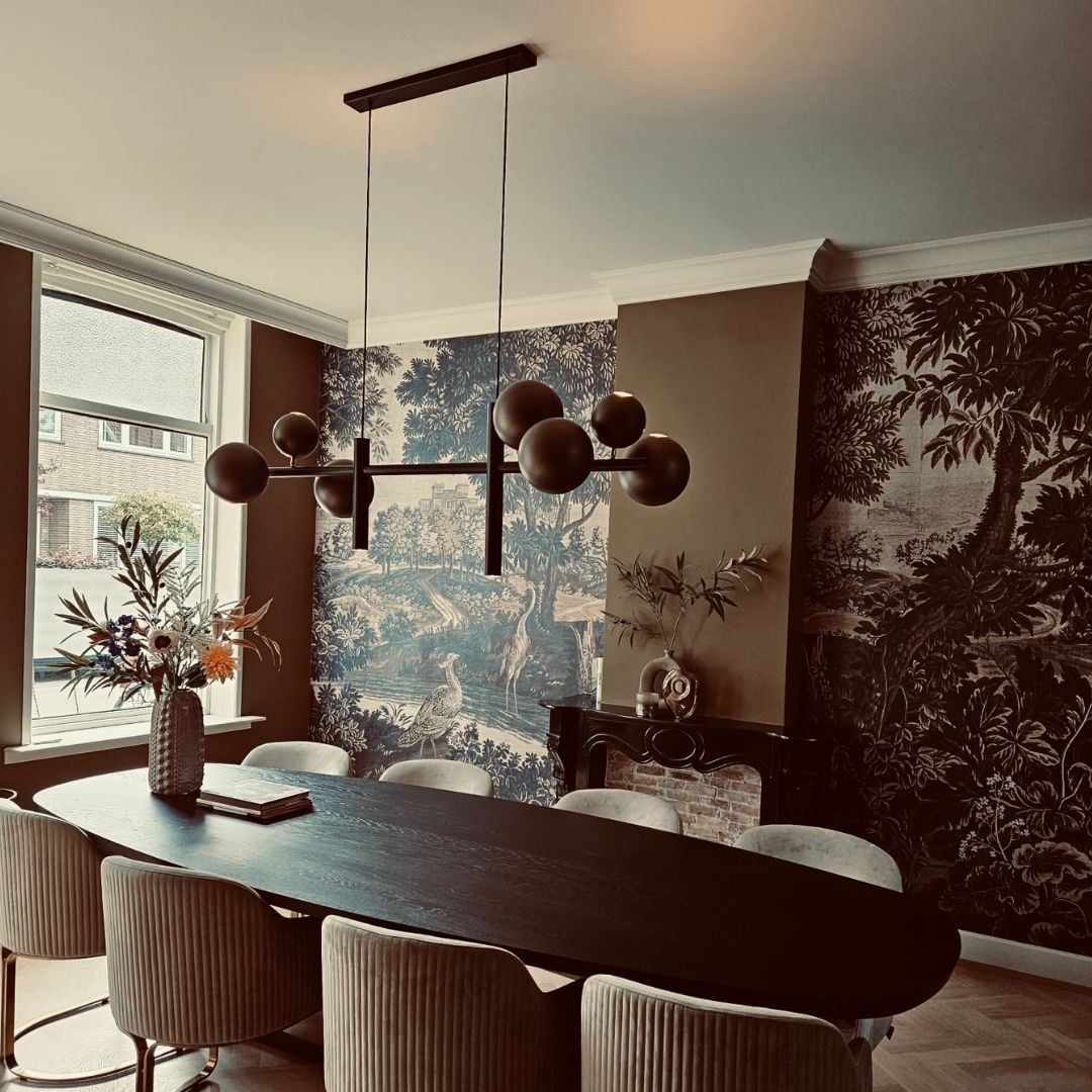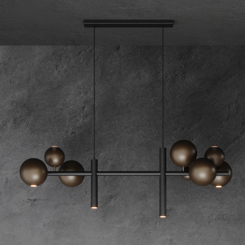 Unsere Urbino-Pendelleuchte ist eine wunderschöne, einzigartige Lampe. Die Kombination des schlichten Rahmens mit den Lichtkugeln wirkt spielerisch. Die Lampe hat Lichtpunkte, die sowohl nach oben als auch nach unten leuchten.